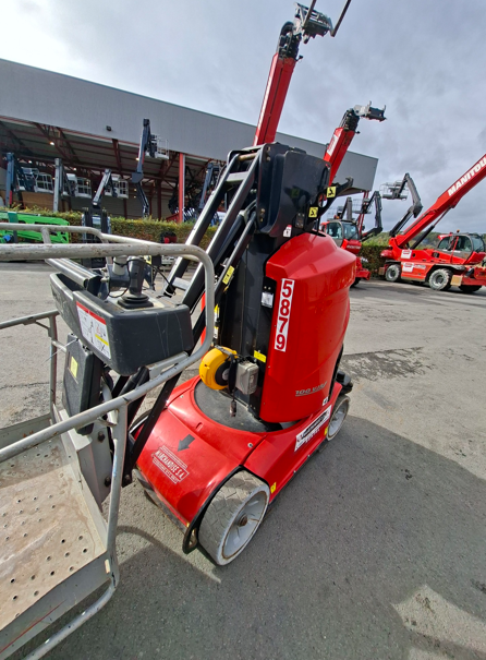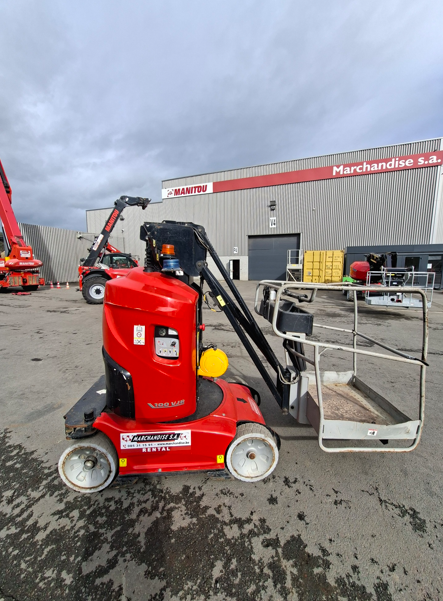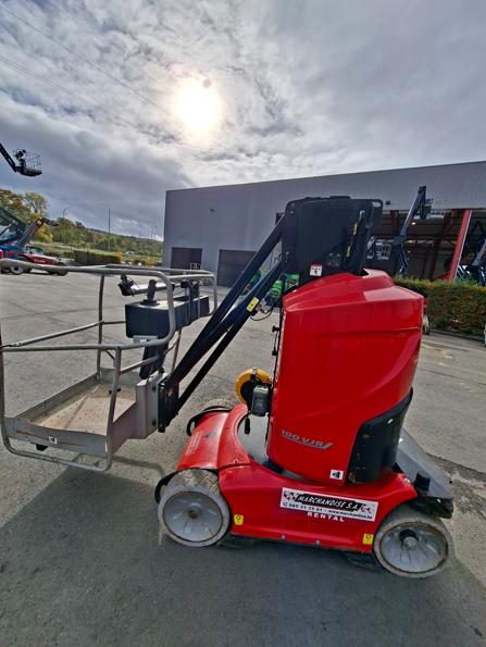 De Manitou 100 VJR is een 100% elektrische verticale masthoogwerker, ideaal voor werkzaamheden binnenshuis op industriële, logistieke of commerciële sites. Dankzij de telescopische mast bereikt hij een werkhoogte van 10 meter met een zijaftand van 3,15 meter, wat toegang biedt tot moeilijk bereikbare zones zonder de machine te hoeven verplaatsen.