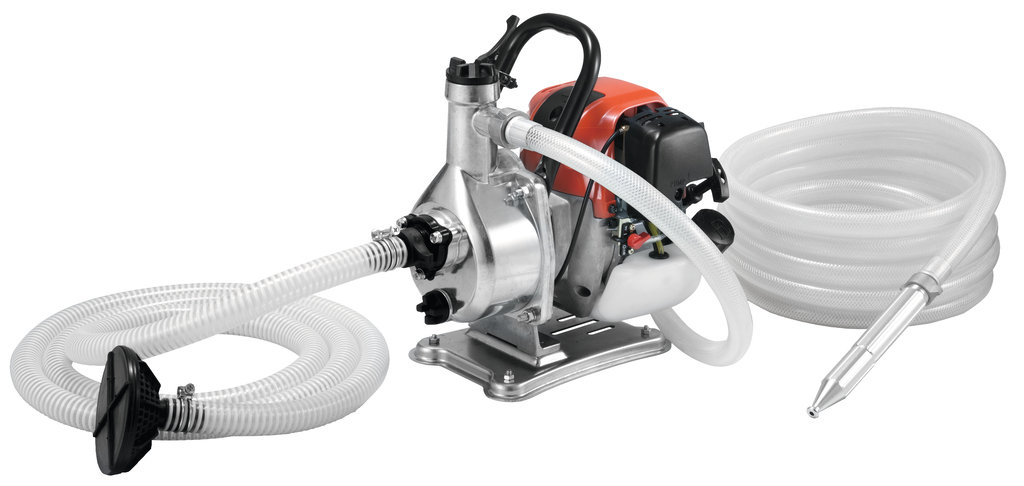 - Zelfaanzuigende centrifugaalpomp met aanzuigslang en spuitlans.